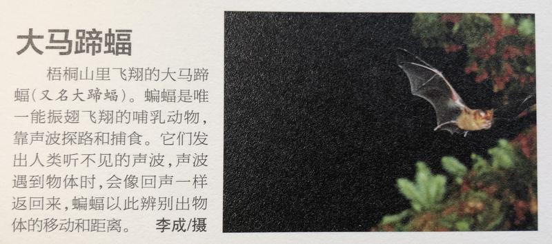 “我是在梧桐山附近仙湖植物園拍到的大馬蹄蝠。每到傍晚,仙湖植物園進(jìn)出園區(qū)的那條路上,都有數(shù)量比較多的大馬蹄蝠在那飛。當(dāng)時(shí)有幾棵樹在開花,我拍了好幾張終于抓拍到一張清晰的?!?月4日,李成在回憶當(dāng)年拍攝經(jīng)歷時(shí)說(shuō),當(dāng)時(shí)蝙蝠群距離他最近的有2-3米,最遠(yuǎn)的有10多米。