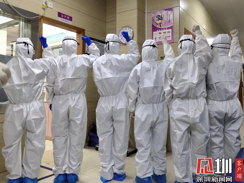 發(fā)熱門診工作人員相互鼓勵。