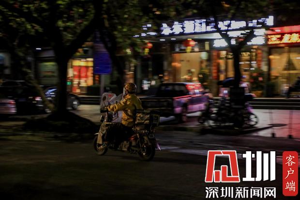夜幕之下,鮮少行人走動,路上只見外賣、快遞小哥在奔忙。