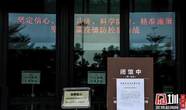 寶安圖書館:透過玻璃窗往里看,館內(nèi)空蕩蕩的場景與往日形成鮮明對(duì)比。