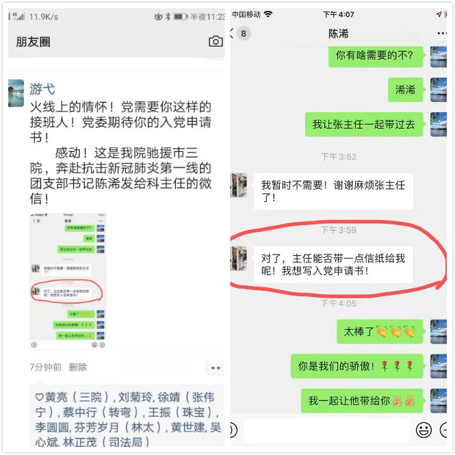 奔赴抗擊新冠肺炎一線的深圳市婦幼保健院團(tuán)支書(shū)陳浠發(fā)給科主任的信息