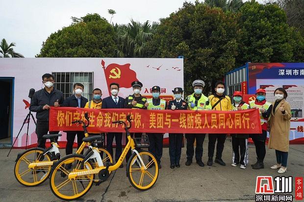 美團(tuán)單車為深圳一線防疫人員送愛心餐和單車騎行卡。