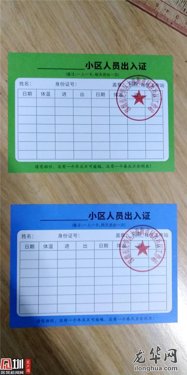 近日,根據(jù)不同居民的情況和需求,大浪街道用四種顏色的卡片對(duì)居民出入進(jìn)行分類管理:紅色是有發(fā)熱等異常癥狀、按要求正在居家隔離的人員,黃色是來(lái)深14天內(nèi),正在居家隔離且無(wú)異常癥狀的人員,可視情況轉(zhuǎn)為其他管理模式。紅、黃兩類人員嚴(yán)禁其出門,由社區(qū)工作站提供物資采購(gòu)、幫送服務(wù)。藍(lán)色是沒(méi)有居家隔離、身體狀況正常的在家人員,憑證可以兩天出入1次;綠色是沒(méi)有居家隔離、身體狀況正常的上班人員,憑證每天可以出入1次。