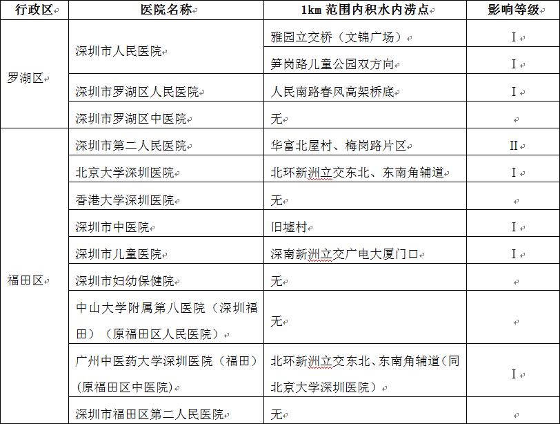 根據(jù)2019年度全市積水內(nèi)澇報送情況,深圳市水務(wù)局初步梳理出全市49家發(fā)熱門診(含1家新型冠狀病毒感染肺炎定點救治醫(yī)院)周邊積水內(nèi)澇點29處,并結(jié)合積水內(nèi)澇嚴重情況分為Ⅰ、Ⅱ、Ⅲ級,詳見附件1《全市發(fā)熱門診及定點救治醫(yī)院周邊積水內(nèi)澇點初步梳理情況》。