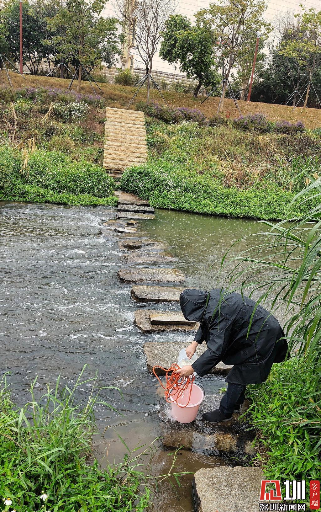 在雨中取樣的水質(zhì)監(jiān)測工作人員