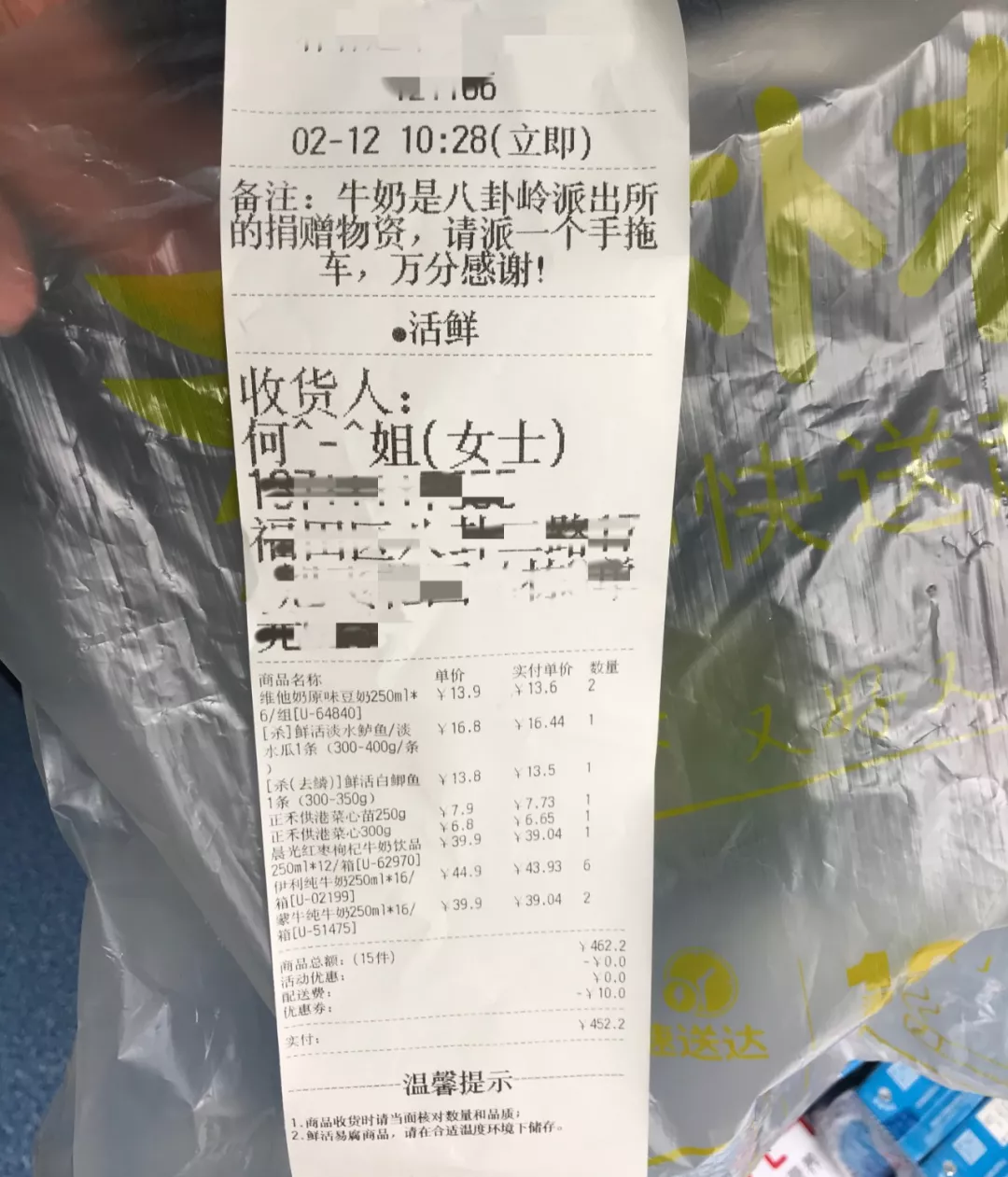 2月12日上午,一名群眾來到深圳市公安局福田分局八卦嶺派出所門口,送上防疫慰問物品。民警問及其姓名和聯(lián)系方式時(shí),她只說:“民警的辛苦我們都看在眼里,這是我作為一名市民的心意和謝意。”便轉(zhuǎn)身離開了。民警在清點(diǎn)紀(jì)錄物資時(shí),無意中發(fā)現(xiàn)了該熱心市民訂購物資的一張采購單,八卦嶺派出所全體警務(wù)人員在這里對(duì)不肯留名的何女士表示衷心的感謝!疫情無情、人民有情,溫暖警心、堅(jiān)定前行!
