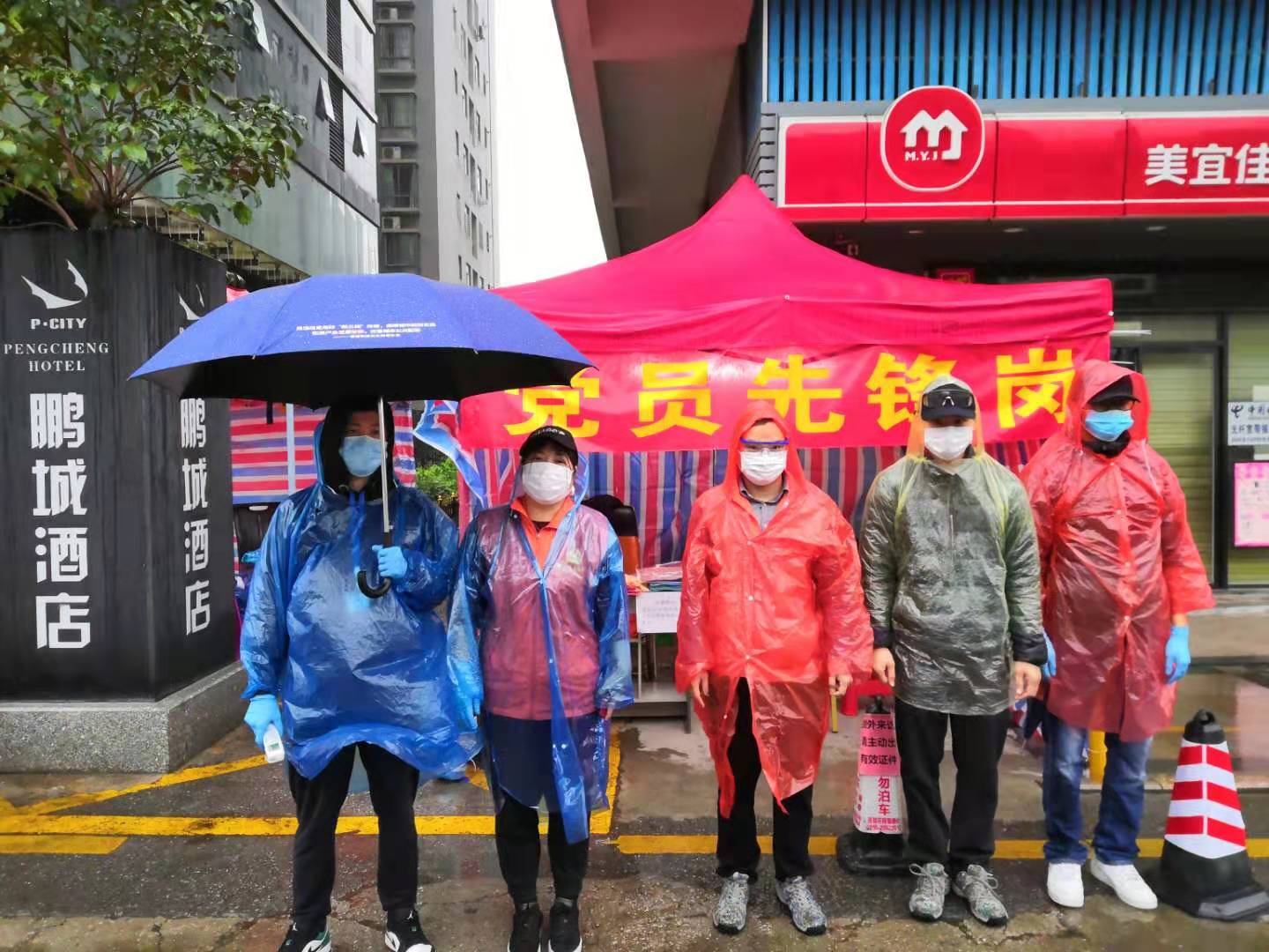 在龍華區(qū)福城街道茜坑社區(qū)的黨員先鋒崗上,工作人員和志愿者只有一襲最簡單的一次性雨衣,卻依然堅(jiān)守在崗位上。(見圳客戶端、深圳新聞網(wǎng)記者沈婷)