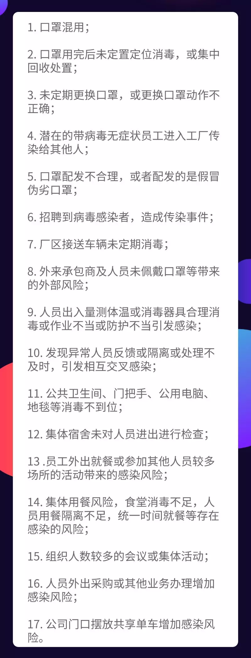 疫情防控和節(jié)后復(fù)產(chǎn)復(fù)工給企業(yè)安全生產(chǎn)帶來(lái)新挑戰(zhàn),如何做好防控措施?哪些風(fēng)險(xiǎn)又要防范?員工又如何自我保護(hù)?