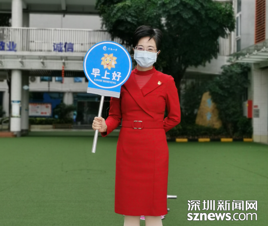 今日的“開學典禮”雖不同往日,校園里空蕩蕩,沒有師生的到來,但寶安區(qū)濱海小學的校園門口依舊出現(xiàn)了一個熟悉的身影,她用這種特殊的方式迎接孩子們開學的第一天,“早上好”“你真棒”,這溫情的話語是李桃輝校長給每一位師生的問候。