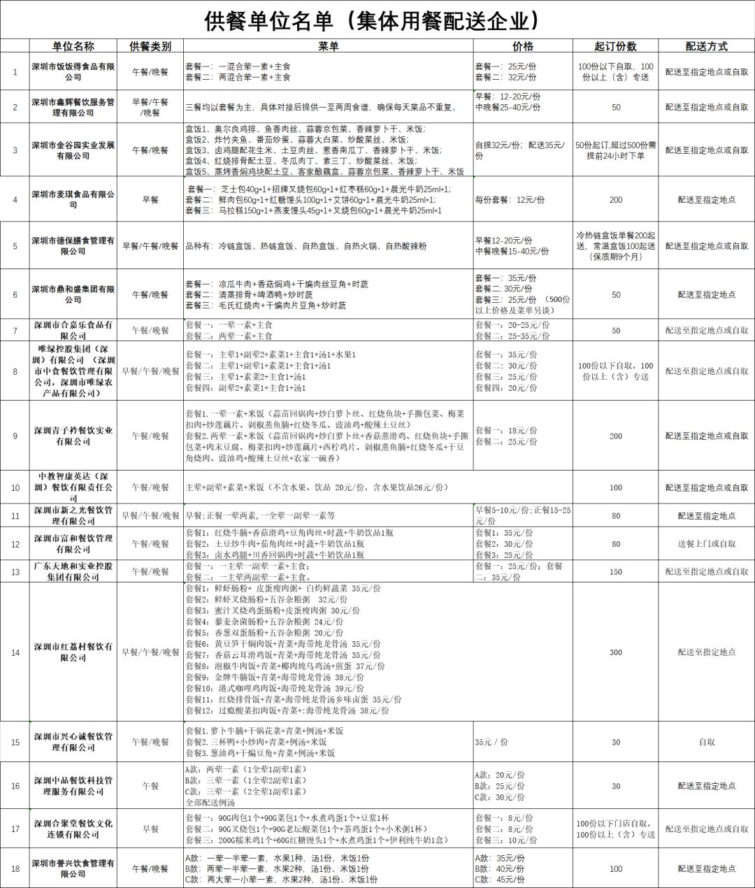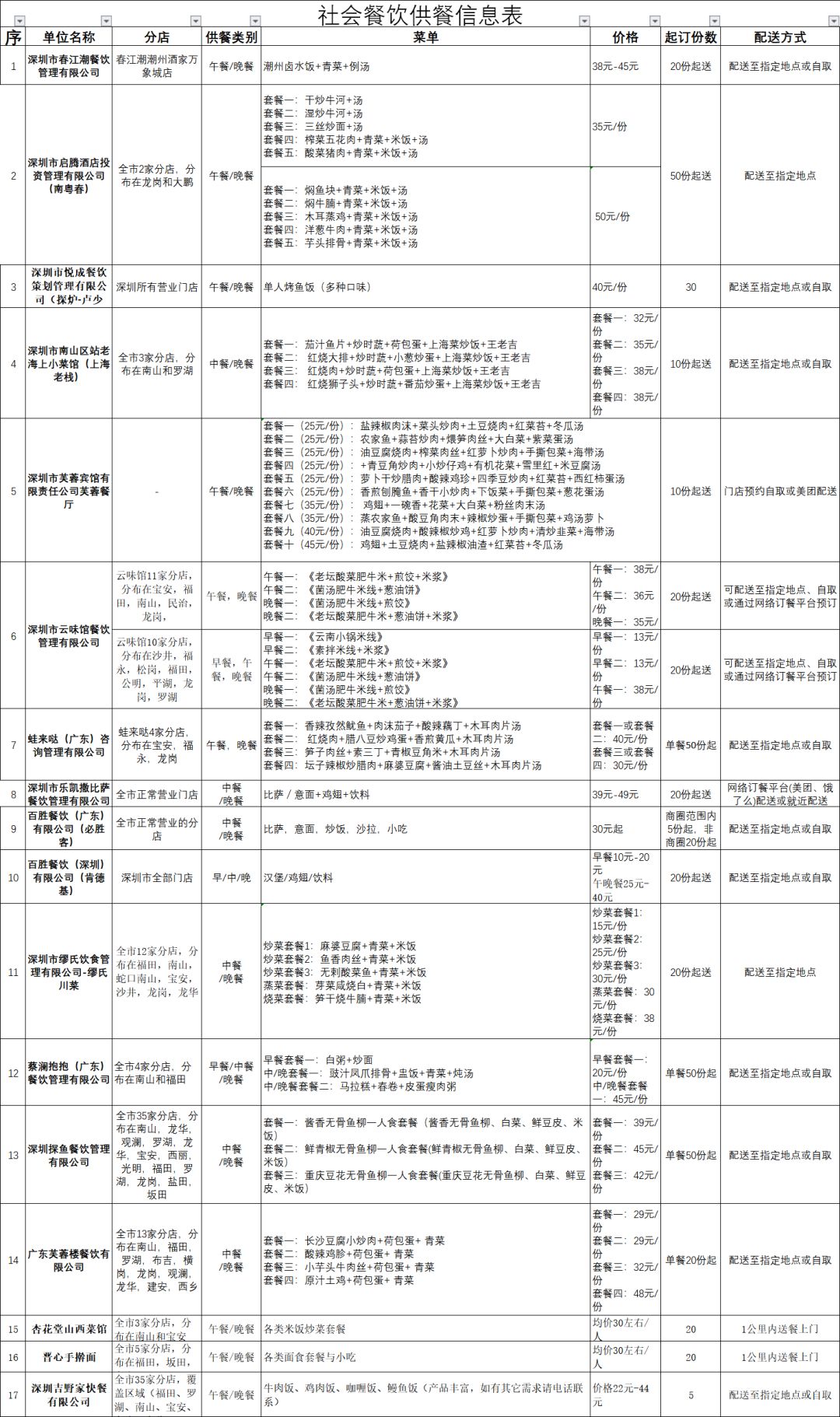 為了保障復(fù)工后集體用餐的安全,深圳市市場(chǎng)監(jiān)督管理局協(xié)調(diào)了安全的訂餐渠道,目前已經(jīng)有79家供餐單位!