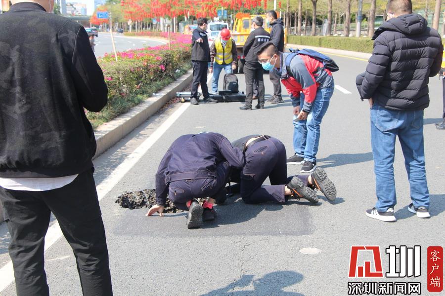 深圳市民廣場前一輔路驚現(xiàn)直徑一米坑 有關(guān)部門:正加緊修復(fù)