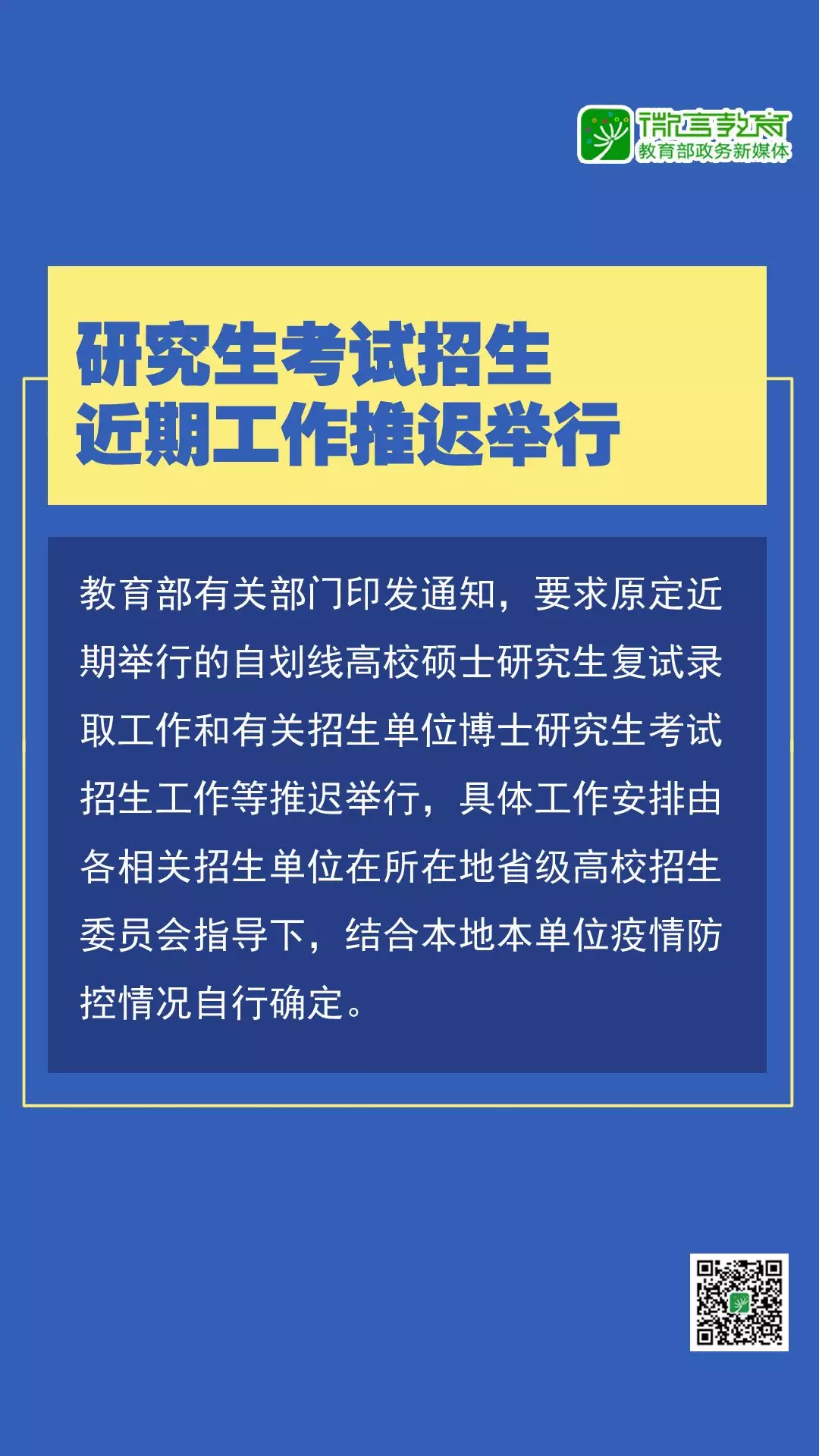 請各市迅速通知本轄區(qū)內(nèi)的中學(xué)和考生,提醒考生及時關(guān)注擬報考院校的官網(wǎng)和官微公告。請各??伎键c及時通知在我省設(shè)點組織藝術(shù)類專業(yè)??嫉母咝#⒆龊每荚囌{(diào)整的解釋引導(dǎo)。請各有關(guān)高校及時在官網(wǎng)和官微對相關(guān)特殊類型考試工作安排調(diào)整發(fā)布公告,并及時通知到已報名考生。各校考考點和有關(guān)高校要加強協(xié)調(diào)溝通,做好通知安撫考生以及后續(xù)相關(guān)工作。