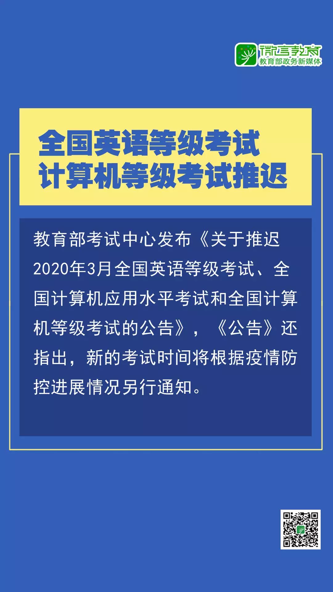 注意啦!研究生、中小學(xué)教資、全國英語等級等考試推遲