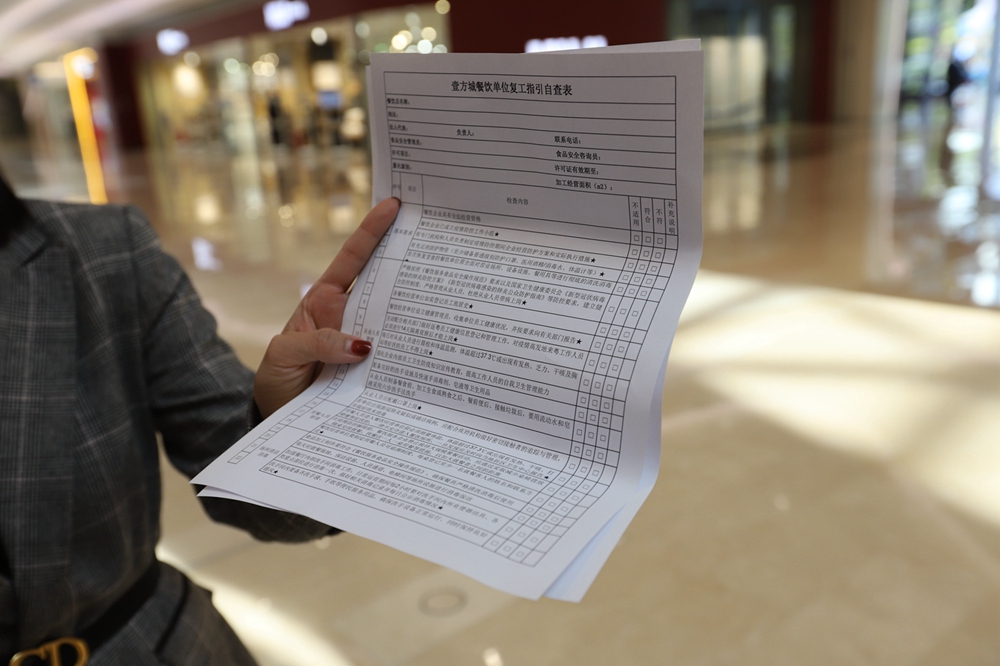 記者了解到,在商戶管理方面,壹方城每日管控商戶員工體溫,并及時測量登記;全場統(tǒng)計商戶員工動向,針對疫情重點地區(qū)員工給予重點跟蹤,要求其在家隔離14天,復工需申請審核;制定統(tǒng)一復工管理標準,要求商戶按照要求進行復工防疫準備;開展商戶日常防疫相關培訓,提升商戶員工防疫意識;全體商戶員工掃碼登記個人信息。