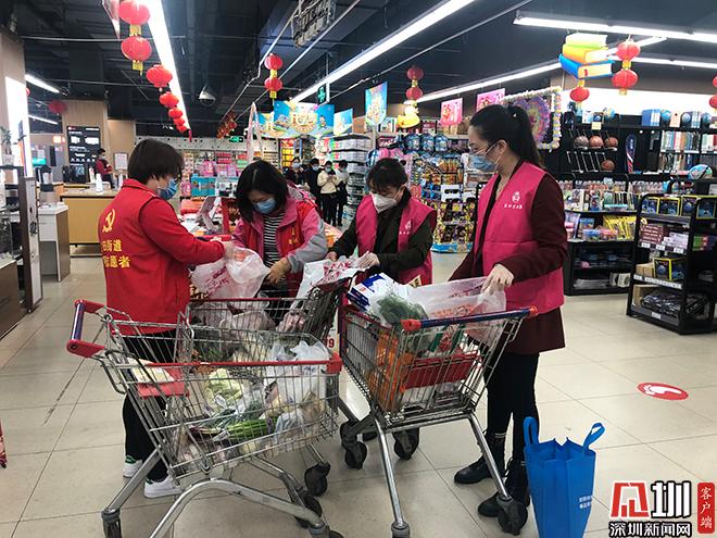 黨員在志愿者為小區(qū)居民提供“送貨上門”服務(wù)