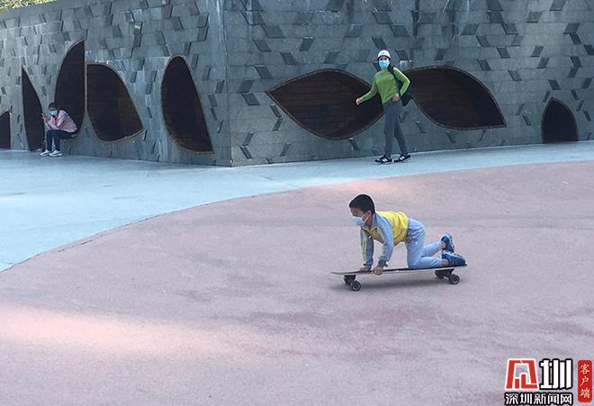 鹽田中央公園是鹽田區(qū)的地標(biāo)之一,內(nèi)有滑板山丘、游樂廣場、活動草坪、主題雕塑和弧形棕櫚大道等游樂場所。在公園里,記者發(fā)現(xiàn),園內(nèi)的廣播循環(huán)播送疫情通知、防護措施等信息,呼吁游人勤洗手、戴口罩、不聚集……進(jìn)入公園游玩的市民均自覺佩戴口罩,十分默契地分散開來,在空曠的地方席地而坐,并自覺保持一定的安全距離。“前段時間一直在家里宅著,連小區(qū)門都不出。今天出來透透氣,順便運動一下?!贝髦谡值膭⑾壬龓е⒆釉陉帥鱿滦蓓?,旁邊擺放了兩輛自行車。他說,這個時候出來呼吸下新鮮空氣,活動下筋骨,十分愜意。“但是,現(xiàn)在還沒到放松的時候,口罩肯定是要戴的,人太多、封閉的地方不建議去,還是要時刻保持警惕?!?/p>