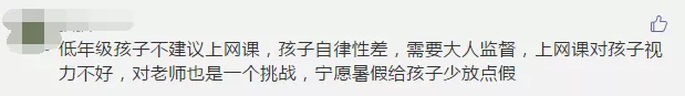 有些參與者則直接留言:由于孩子自律性差,建議低年級(jí)不上網(wǎng)課。