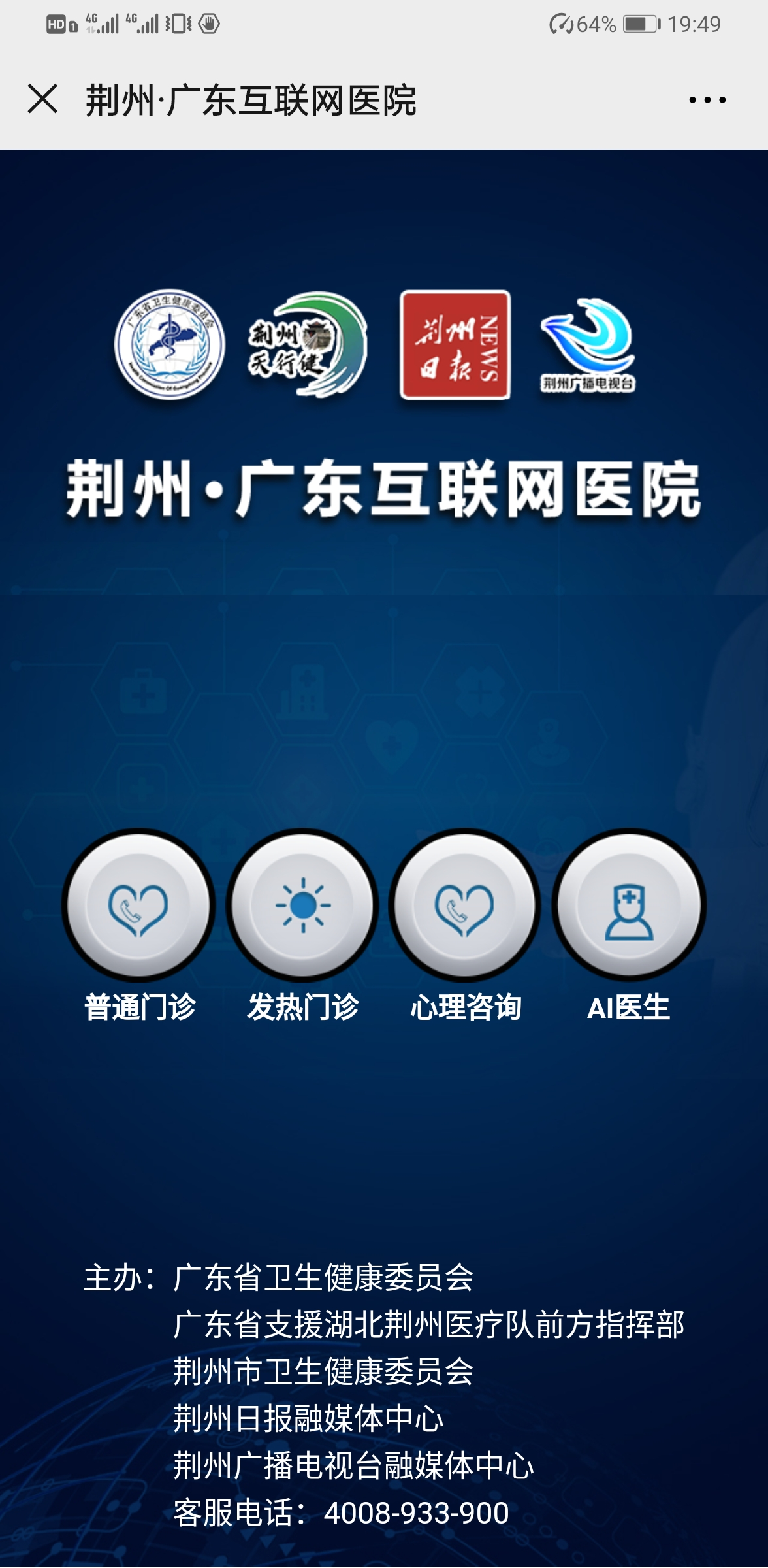 這家互聯(lián)網(wǎng)醫(yī)院是由廣東省衛(wèi)生健康委和廣東支援湖北荊州醫(yī)療隊(duì)前方指揮部聯(lián)合,在充分研判荊州疫情防控形勢(shì)的基礎(chǔ)上組建的網(wǎng)上醫(yī)療隊(duì),實(shí)現(xiàn)荊州市民足不出戶,即可享受后方優(yōu)質(zhì)的線上服務(wù)資源,為前方“主戰(zhàn)場”減負(fù)。