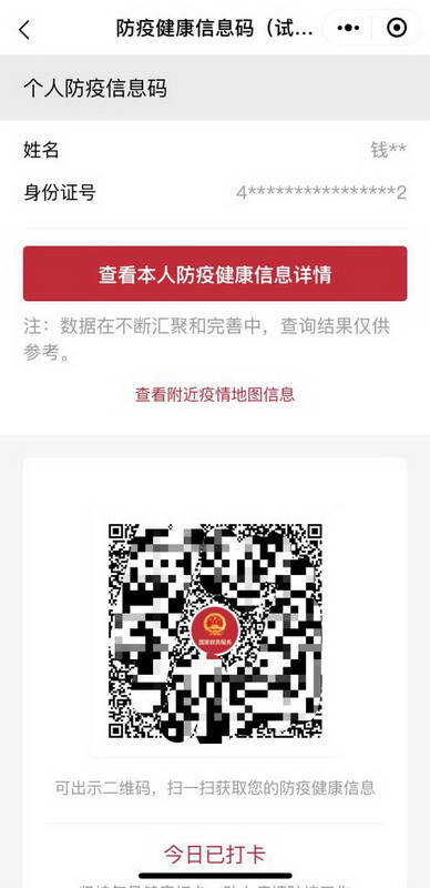 一鍵領(lǐng)取“防疫健康信息碼” 掃一掃出示“掌上健康報告”