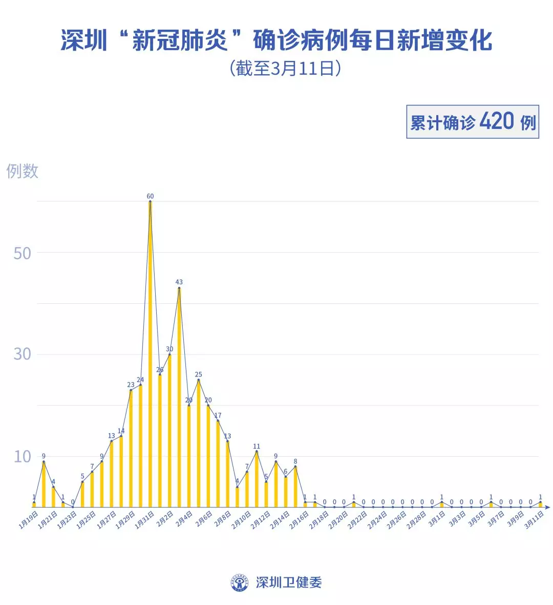截至3月11日24時(shí),深圳累計(jì)報(bào)告“新冠肺炎”確診病例420例。3月11日當(dāng)天全市新增確診病例1例,當(dāng)天出院病例5例(從2月26日起不再公布出院個(gè)案)。