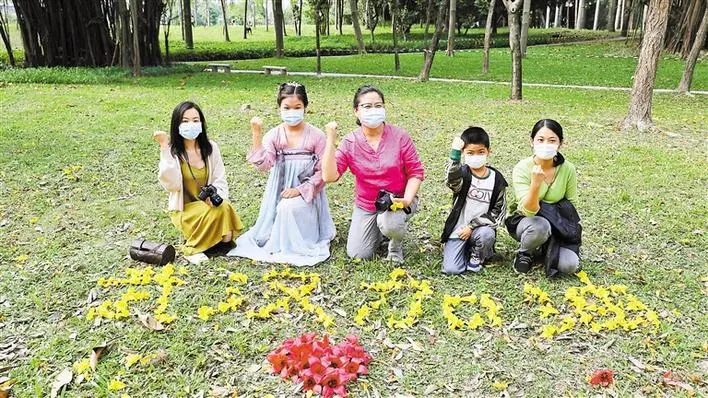 攝影愛(ài)好者李女士,趁著百花盛開(kāi)的季節(jié)到公園攝影,見(jiàn)到小朋友正在用花瓣擺字,便上前助力。喜歡漢服文化的林小姐也一同上前,大家的踴躍參與感染了身為湖北人的記者,在眾人的努力下,最終完成這幅“花字”,共同為武漢加油。