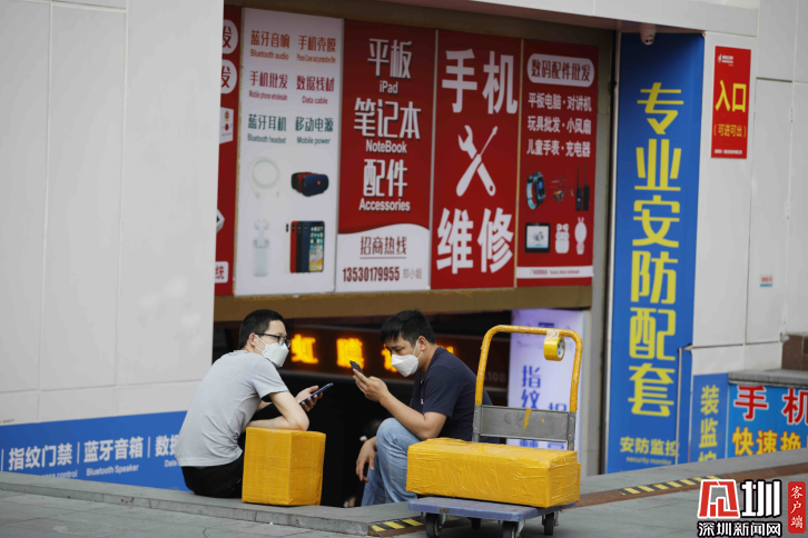 華強北商圈,兩位正在休息的人。
