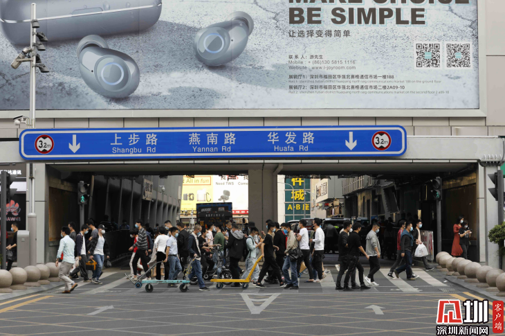3月16日下午,華強(qiáng)北商圈的一條斑馬線上,人流量明顯增加。