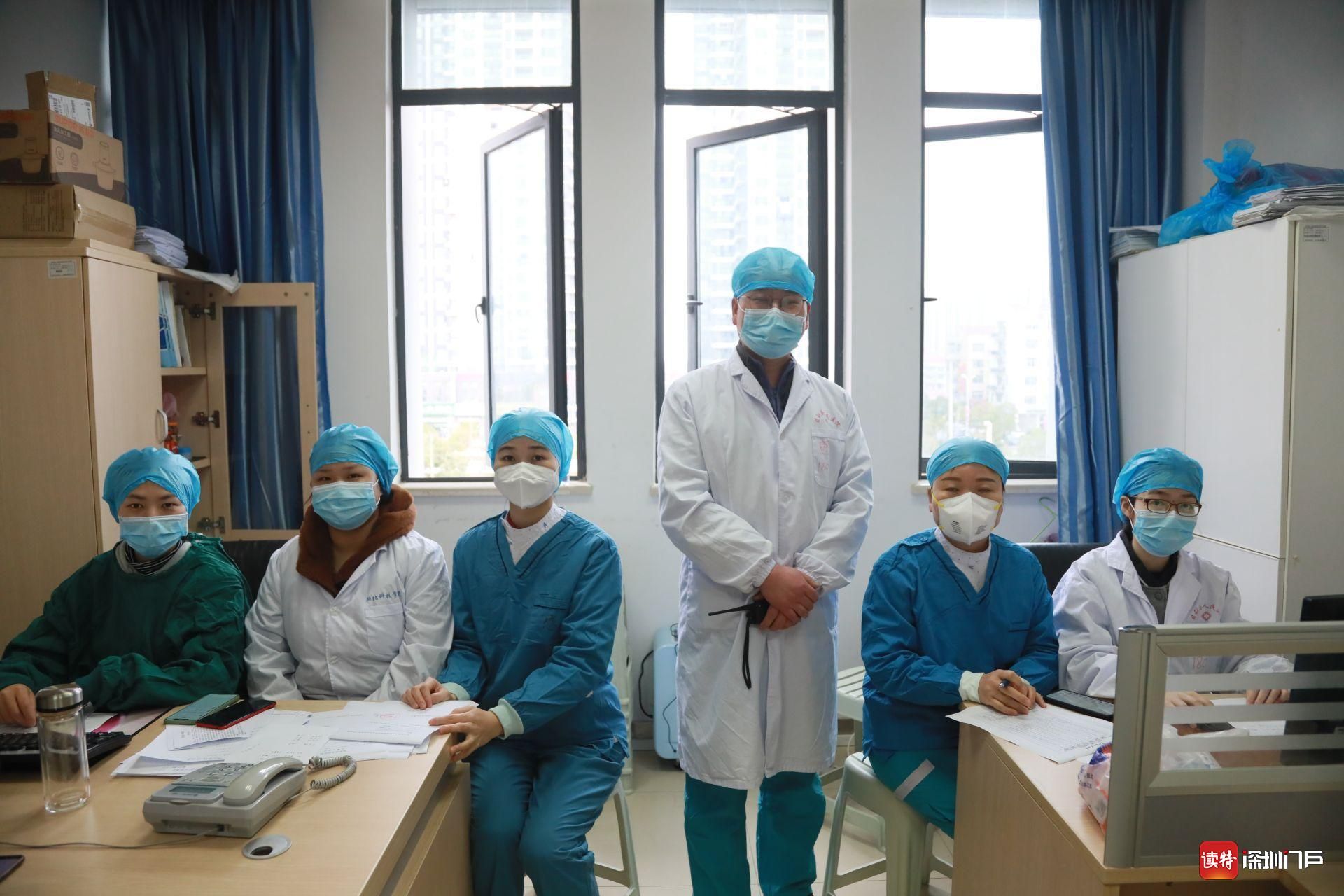 2月24日,監(jiān)利縣人民醫(yī)院感染科副主任黃建平(中)和同事在辦公室里的合影。疫情爆發(fā)后,黃建平寫下遺書投入戰(zhàn)疫,隨后在實現(xiàn)確診患者和疑似患者雙清零之前,連續(xù)50多天沒有休息,沒有回過家。