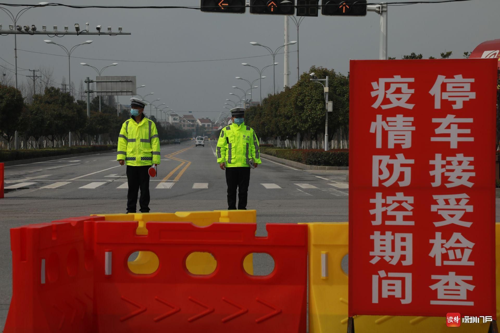 2月18日,監(jiān)利,街頭執(zhí)勤的交警。