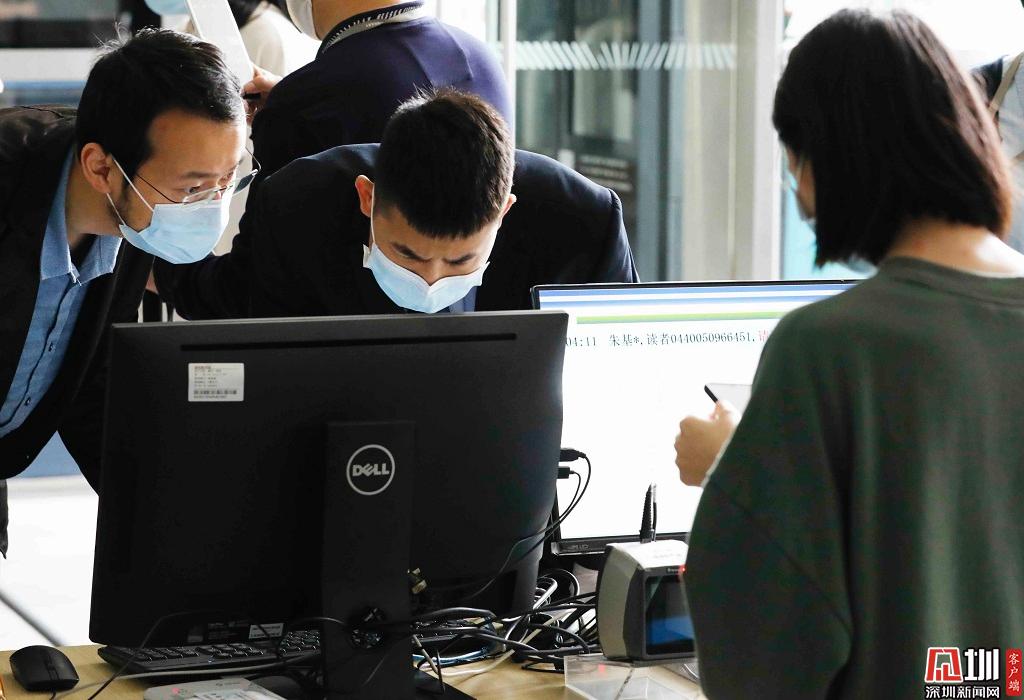 深圳圖書館入口處,工作人員正在驗(yàn)證入場者的讀者證。
