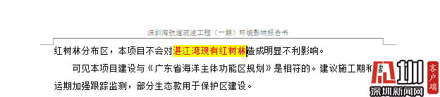 記者在《環(huán)評報告》中看到,有關(guān)表述存在錯誤屬實,在對深圳灣航道疏浚工程(一期)項目可實現(xiàn)的目標(biāo)的闡述中,將“深圳市的目標(biāo)”闡述為“湛江市的目標(biāo)”;將“深圳灣紅樹林”表述成“湛江灣紅樹林”;將“深圳市國民經(jīng)濟(jì)”表述成“湛江市國民經(jīng)濟(jì)”;將“深圳海事局”表述成“湛江海事局”等。