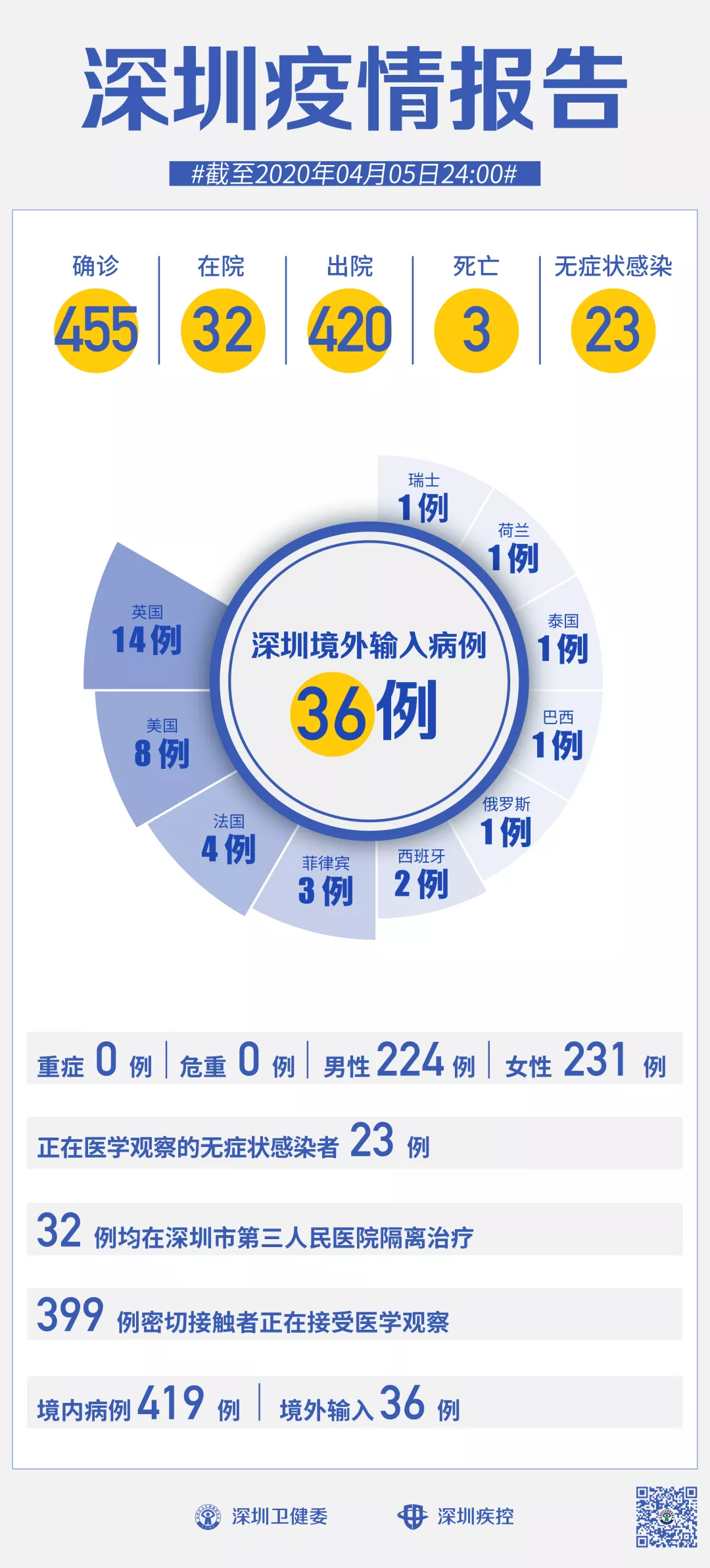 【無癥狀感染者】:當(dāng)日新增2例(瑞士、湖北各輸入1例),全市尚在醫(yī)學(xué)觀察的無癥狀感染者23例,其中境外輸入12例。