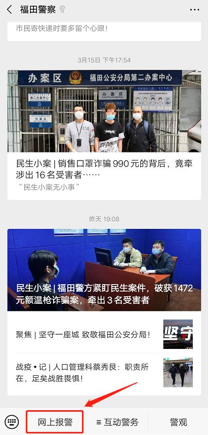1、關(guān)注“福田警察”微信公眾號(hào)