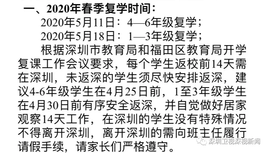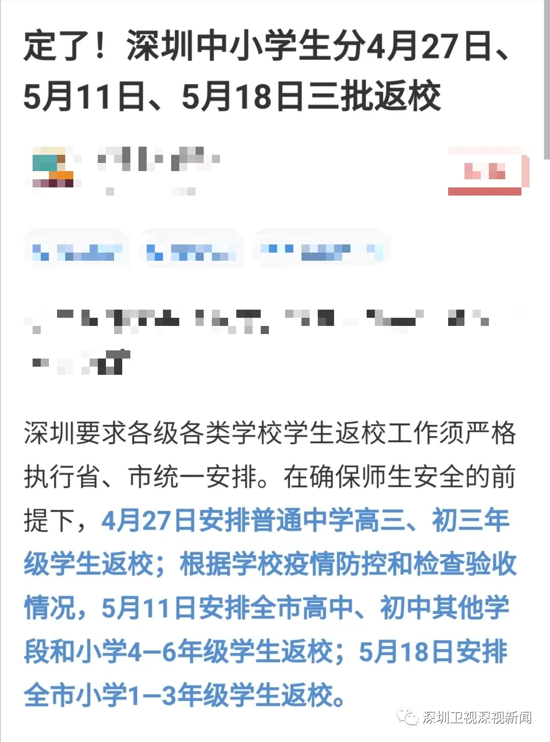 網(wǎng)傳深圳中小學(xué)生5月11日和18日分批返校?市教育局回應(yīng)來了