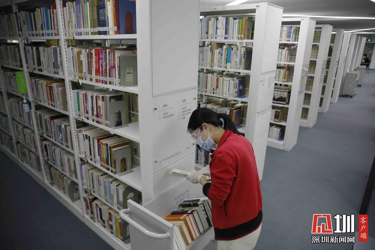 一位工作人員正在準(zhǔn)備將書上架。