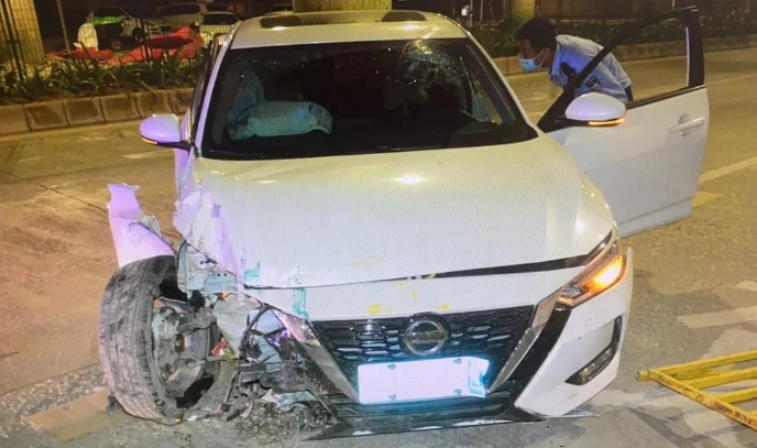結(jié)果,連撞四車后又撞上公交站臺。