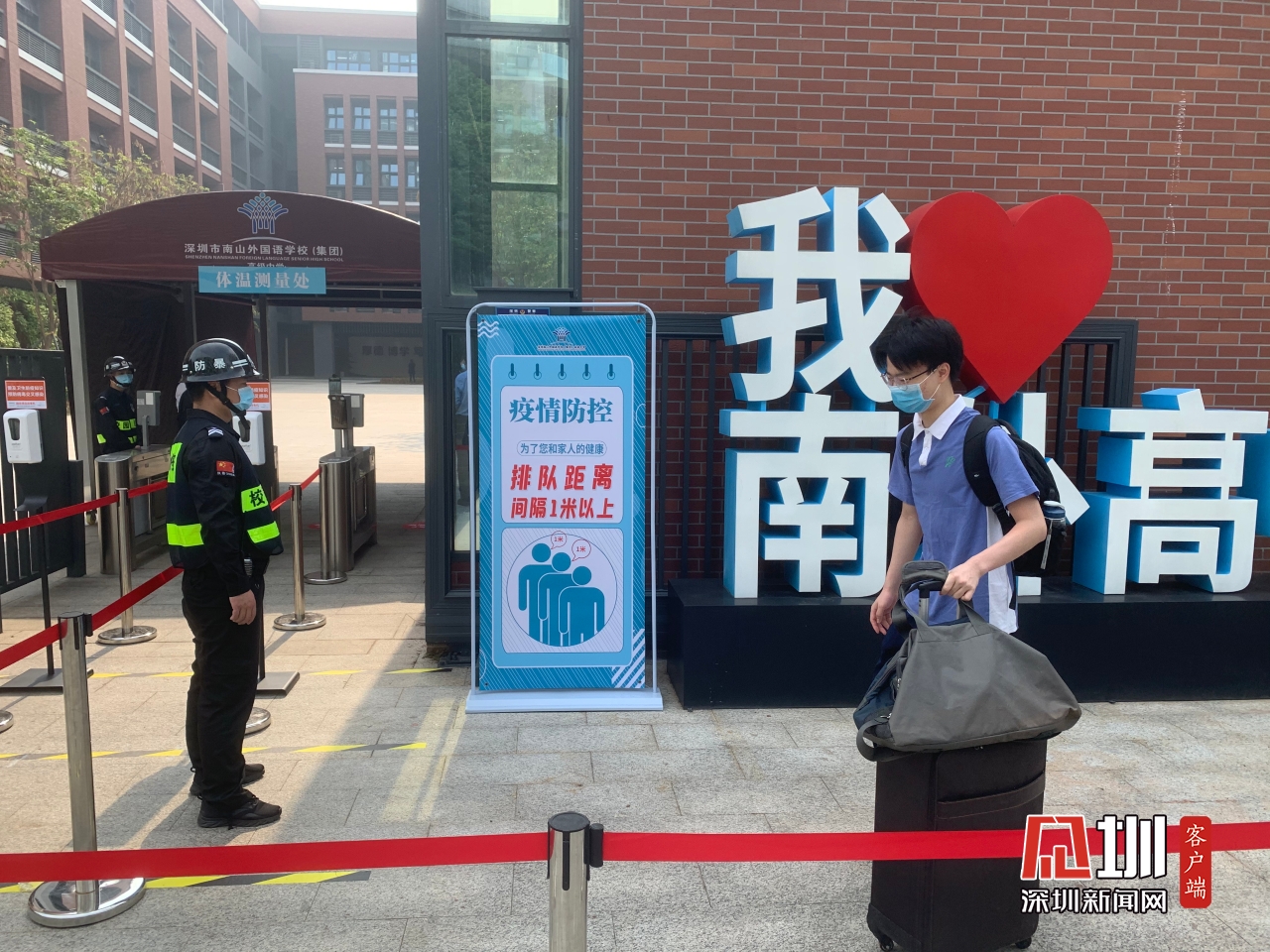 南山外國語高中則采取了減少學生宿舍人均密度的方式作為防疫“硬核”舉措。“目前所有進入學校教職工、學生都進行了核酸檢測。在住宿方面,學校將每個宿舍6人居住改為4人居住,并保持時刻通風。每個班級30人左右,保證單人單桌?!蹦仙酵鈬Z學校(集團)高級中學校長馮大學告訴記者,每個進校學生首先要進行行李箱的消毒,隨后查驗健康碼,最后進行手部消毒和面部測溫,完成整個流程大概需要1分鐘時間。