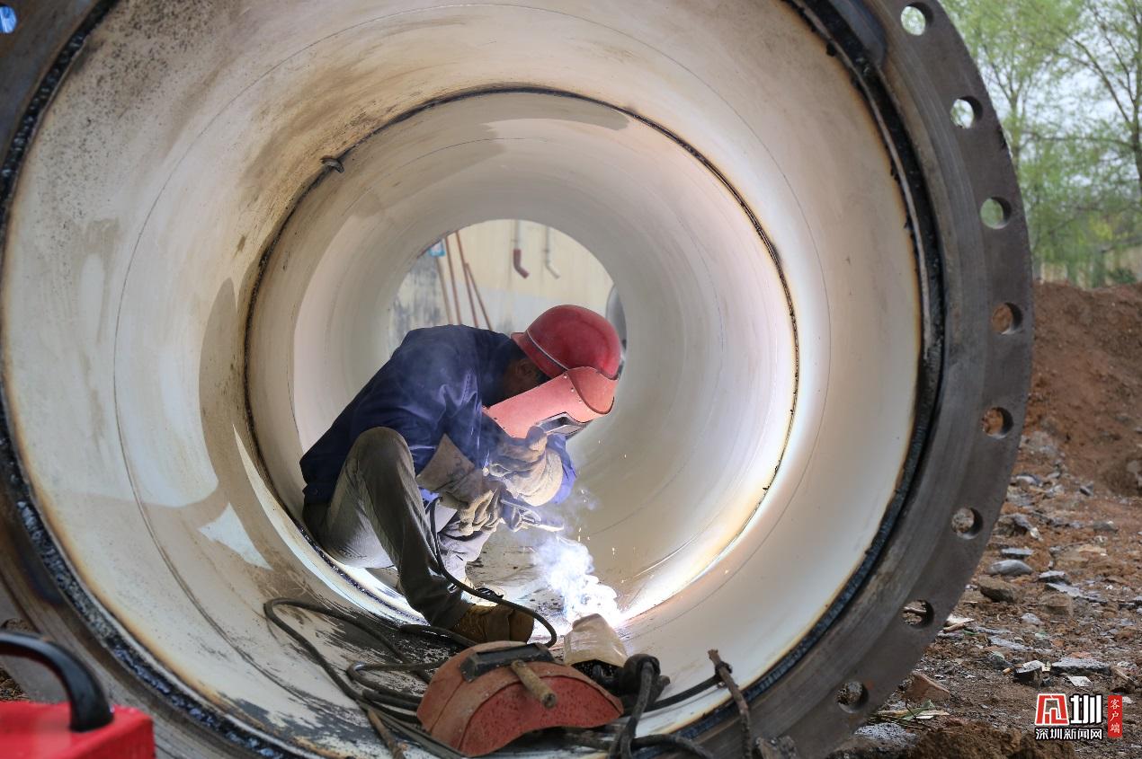 焦作水務(wù)公司電焊工申強,正對府城水廠配套新城加壓站 DN1200管道進行工藝焊接。