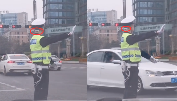 也給交警蜀黍的……粉紅口罩和小蝴蝶結(jié)一個面子?