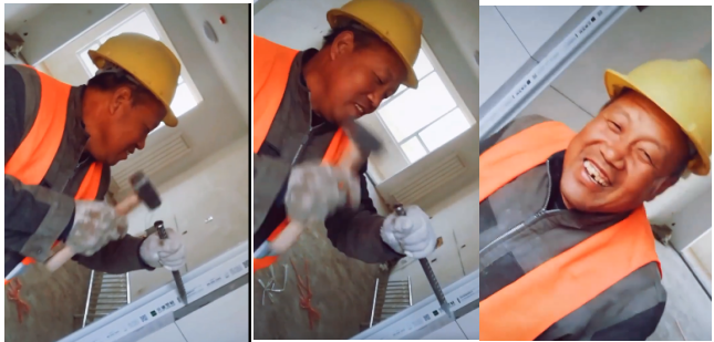 農(nóng)民工兄弟:沒發(fā)工資,沒遇到什么開心的事兒,哼著歌就蹦了。