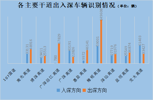 全市入深方向39.71萬輛,環(huán)比上升0.19%;出深方向50.29萬輛,環(huán)比上升31.45%。