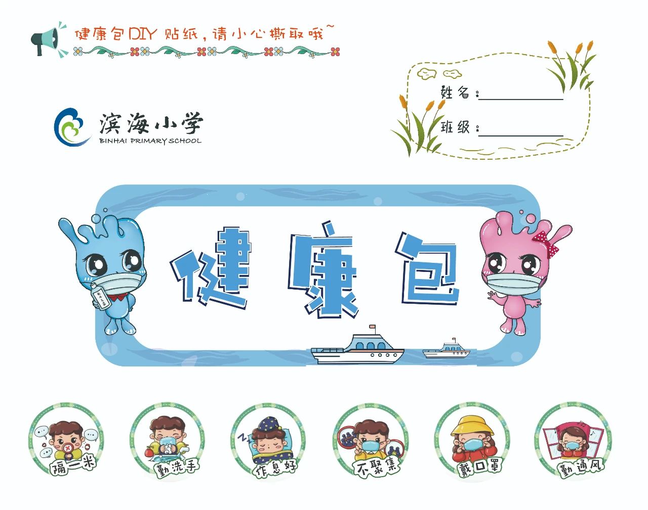 《健康包》,也是學(xué)校精心為返校的學(xué)生準(zhǔn)備的一份健康防疫小禮包,里面有臂貼、DIY貼紙等!這些萌萌的DIY貼紙,可以根據(jù)孩子們的個性需求和遵守情況,自由拼貼!學(xué)校通過這些充滿童趣的設(shè)計,讓孩子們將防護措施牢記于心!