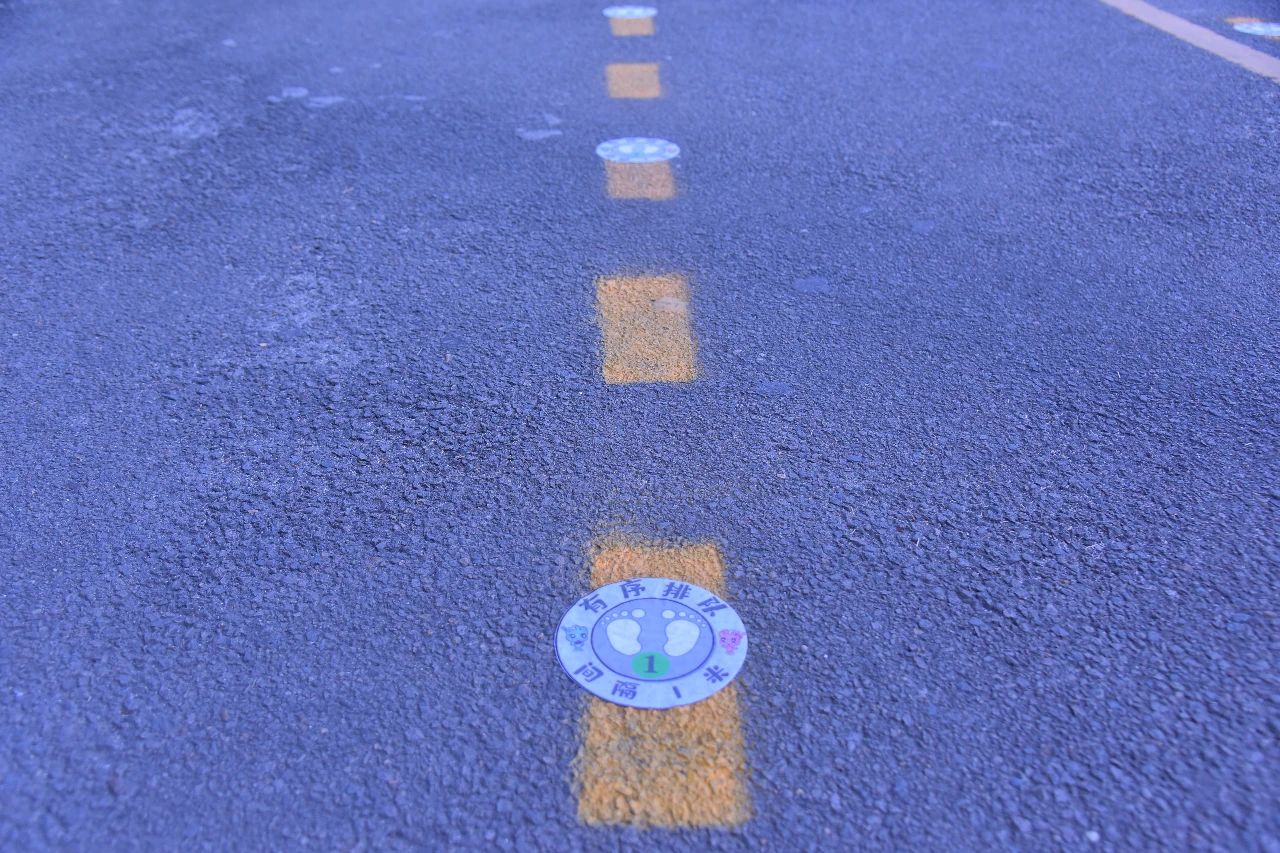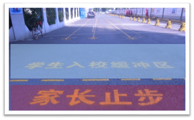 校門口還設(shè)置了,入校緩沖區(qū),家長止步區(qū),三色地貼!請家長們止步!孩子們可以循著地貼,走向?qū)儆谧约旱纳释ǖ溃?/p>