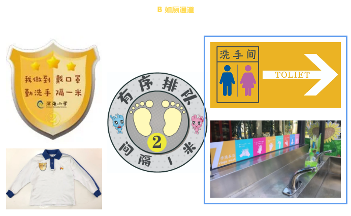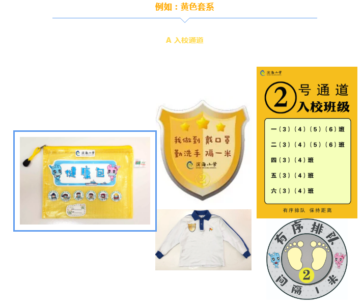 學(xué)校將教學(xué)區(qū)劃分為“綠黃藍”三區(qū),并精心設(shè)計了帶有濱海元素的“三色”入校通道、三色盾牌、三色貼紙等!