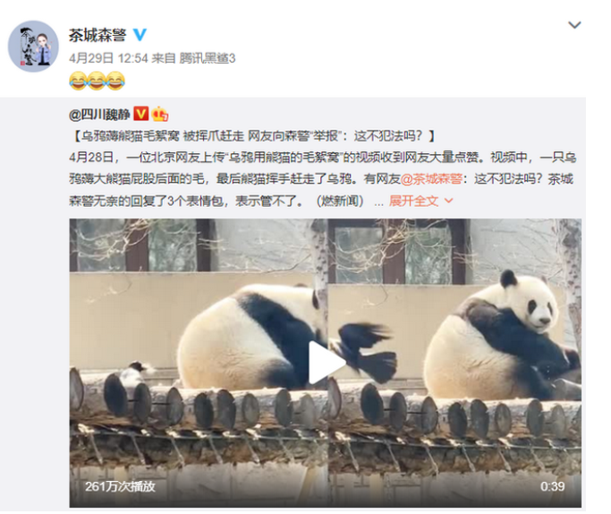 一周冰紛播|哈哈!烏鴉逮著熊貓薅毛遭網(wǎng)友舉報 森警回應:管不了