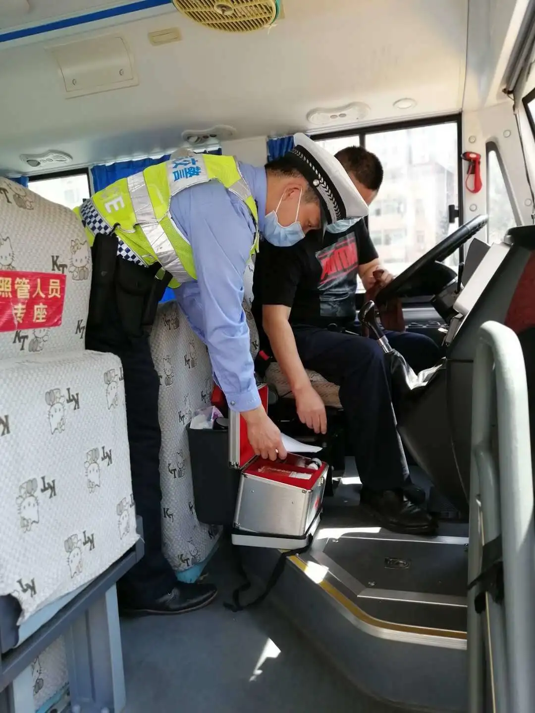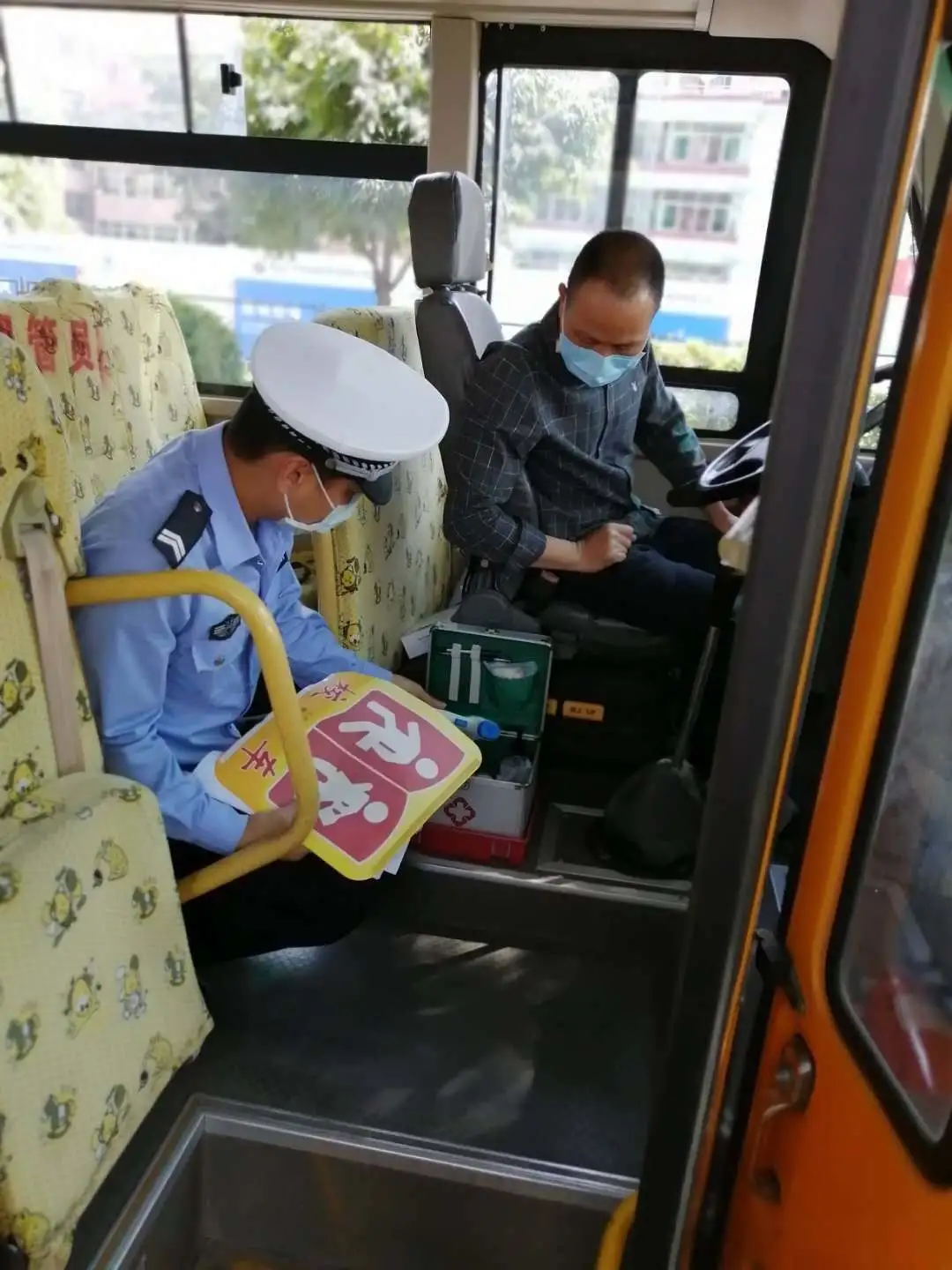 檢查校車車況及安全裝置,是否落實“每個座位一條安全帶”、配備行駛記錄功能的衛(wèi)星定位裝置、干粉滅火器、急救箱和照管人員座椅(位)、應(yīng)急出口和應(yīng)急錘(逃生錘)等安全設(shè)備、噴涂放大牌號和統(tǒng)一顏色、粘貼標(biāo)識等。