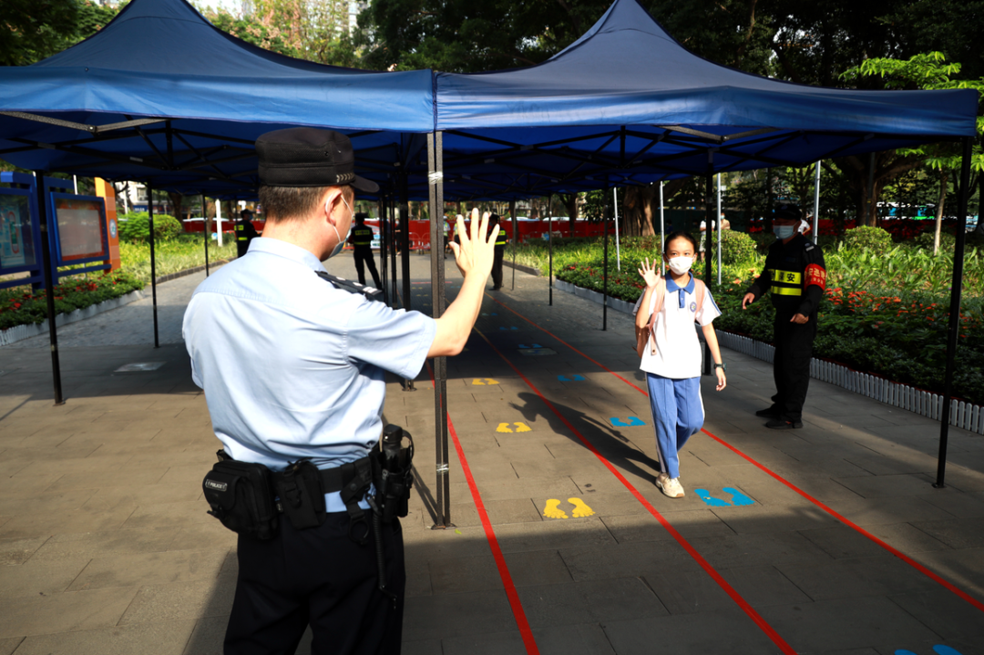 綠樹(shù)陰濃夏日長(zhǎng),恰是讀書好時(shí)節(jié)。5月11日,深圳市第二批學(xué)生返校復(fù)課。按照深圳市公安局和福田區(qū)委區(qū)政府關(guān)于復(fù)學(xué)復(fù)課的部署要求,深圳市公安局福田分局全面開(kāi)啟“護(hù)學(xué)模式”,做實(shí)做細(xì)各項(xiàng)防控舉措,為福田學(xué)子們營(yíng)造安全有序的開(kāi)學(xué)環(huán)境,全力護(hù)航校園安全。據(jù)統(tǒng)計(jì),5月11日,福田公安分局共出動(dòng)警力870人次,發(fā)動(dòng)保安員1105人次、護(hù)學(xué)崗力量953人次,保障全區(qū)105所學(xué)校,10.6萬(wàn)名學(xué)生安全返校復(fù)課。