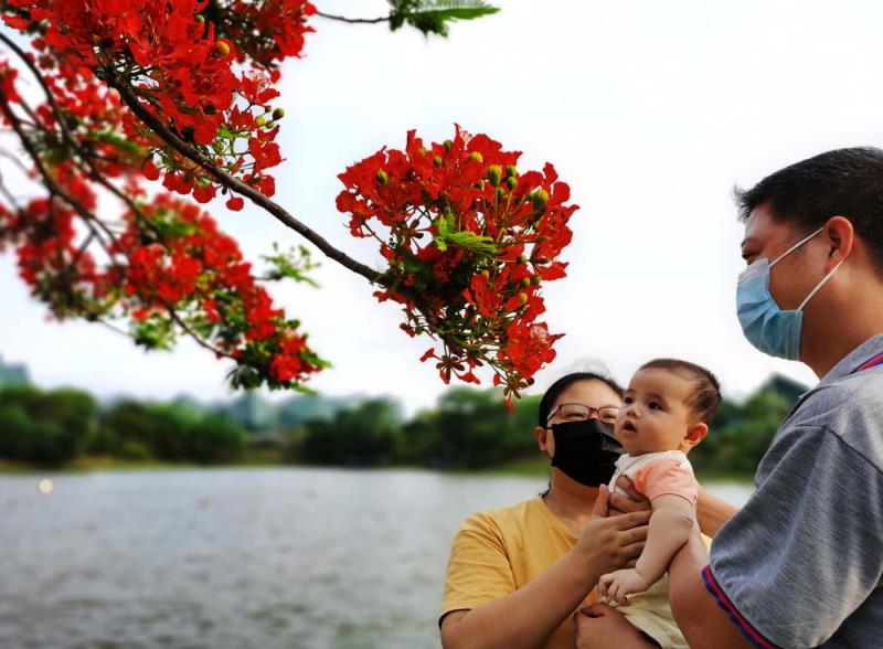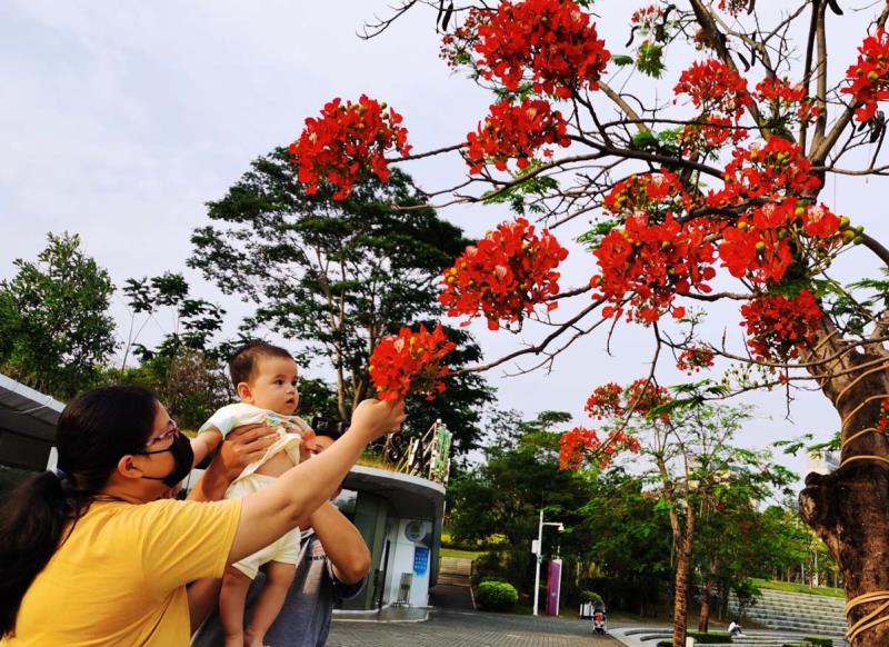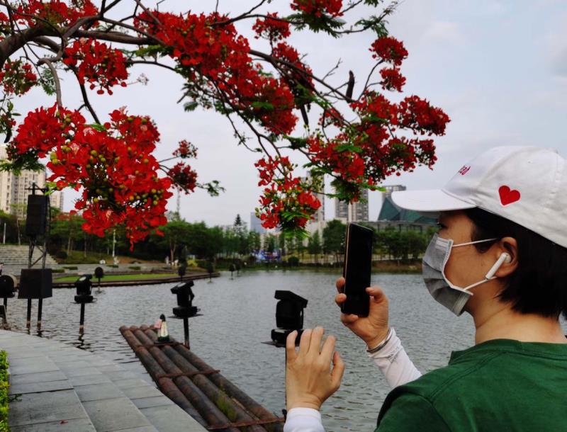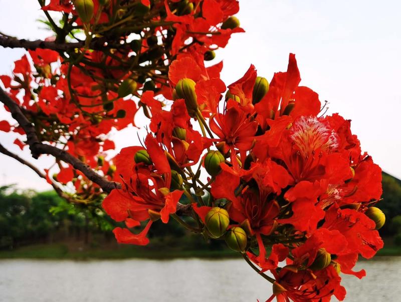 鳳凰木又名火樹(shù)、紅花楹,由于其開(kāi)花時(shí)"葉如飛凰之羽,花若丹鳳之冠",因而得名「鳳凰樹(shù)」。每年5月至7月,是鳳凰樹(shù)開(kāi)花的時(shí)節(jié)。在鵬城公園、道路兩旁到處可見(jiàn)鳳凰花盛開(kāi),當(dāng)下鳳凰花開(kāi)正燦爛,錦簇花團(tuán)紅似火,成為鵬城亮麗的風(fēng)景線。圖為龍崗大運(yùn)中心鳳凰樹(shù)花開(kāi)吸引市觀賞拍照。