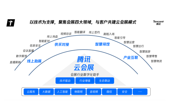 數(shù)據(jù)顯示,騰訊云會(huì)展已經(jīng)為北京、上海、廣州、深圳、天津等15個(gè)一線城市,超過100場(chǎng)大型展會(huì)接入數(shù)字化技術(shù)提供咨詢和服務(wù),涉及范圍覆蓋金融、文化、貿(mào)易、消費(fèi)、跨國(guó)交流多個(gè)行業(yè)和領(lǐng)域。