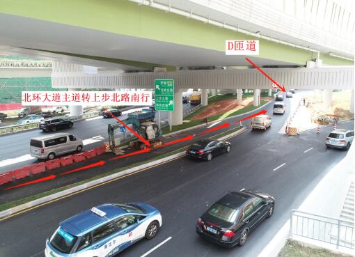 封閉北環(huán)大道主道轉(zhuǎn)上步北路南行路口,僅作應(yīng)急使用,以減少對(duì)北環(huán)主路交通影響。